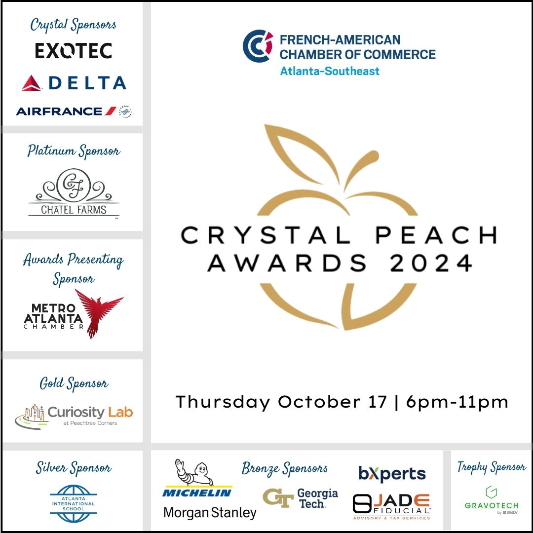 The Crystal Peach Awards Ceremony is the largest event for the French American business community in the region. Started in 2005, each year we recognize the exceptional achievement of the French American business Community. The winners of the Crystal Peach Awards will be announced during this event.