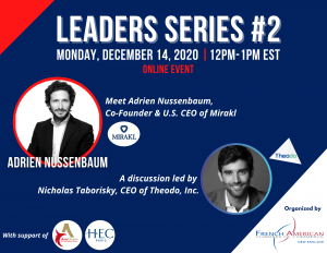 For the first edition, we had the pleasure to interview Julie Chapon & Lucie Basch, Co-Founders of Yuka and Too Good To Go, 2 world-famous French applications (40 million downloads between them) launched on the American market. It is our honor to announce Leaders Series #2, a conversation with Adrien Nussenbaum, CEO of Mirakl Inc., the global leader in online marketplace solutions. Join us on Monday, December 14, 2020 at 12:00-1:00pm EST/18H-19H Paris Time.