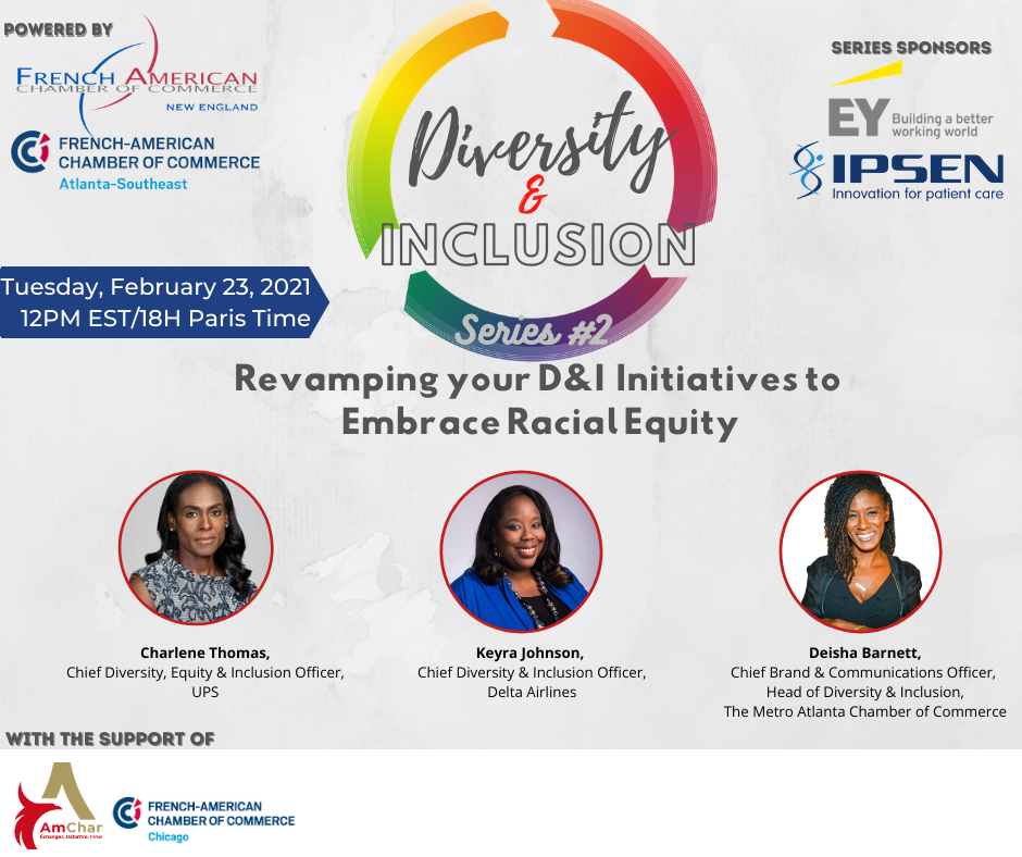 Join us on Tuesday, February 23, 2021 @ 12pm EST/18H Paris Time as we will be talking about racial equity with Charlene Thomas, Chief Diversity, Equity and Inclusion Officer at UPS andKeyra Lynn Jonhson, Chief Diversity & Inclusion at Delta Air Lines.