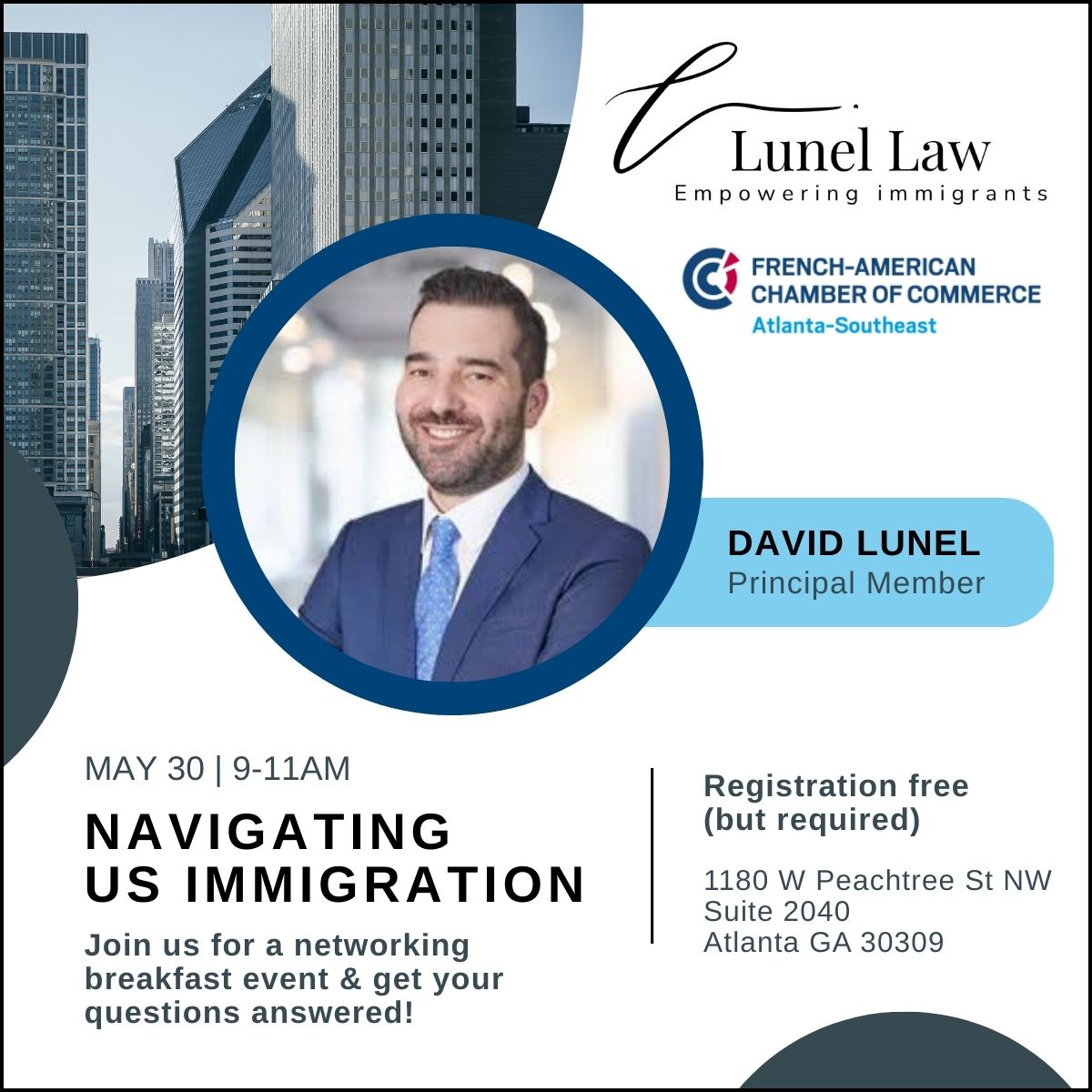 Join us for an insightful event on U.S. immigration, presented by David Lunel of Lunel Law, where attendees will gain valuable knowledge on the latest immigration policies, visa options, and practical guidance for navigating the U.S. immigration system. Whether you're an international professional, employer, or simply looking to better understand your options, this session will provide clear, expert advice and answer your key questions. Don’t miss this opportunity to hear directly from immigration law specialists and connect with others exploring similar paths.