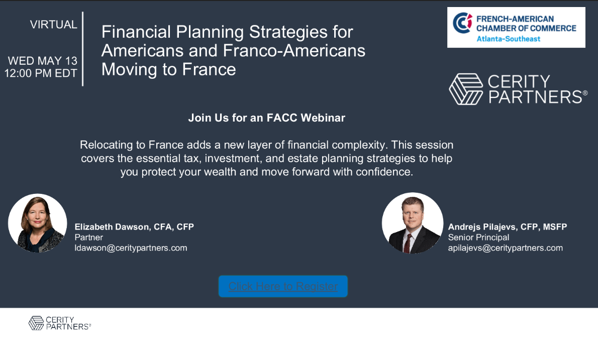 Please join us for a web presentation focused on the unique financial planning opportunities and challenges facing Americans and Franco-Americans who are relocating to, or already living in, France.